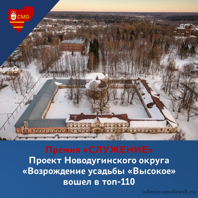 Мы гордимся тем, что Смоленская область представлена уникальным проектом Новодугинского округа (Глава МО Владимир Соколов) «Возрождение усадьбы «Высокое»: от руин к образовательному кластеру» в номинации «Развитие территории — благополучие жителей», который стал ярким примером бережного отношения к культурному наследию и современным потребностям общества. Основная цель проекта — не просто сохранить памятники архитектуры XIX–XX веков, но интегрировать их в активную социальную и экономическую жизнь региона.